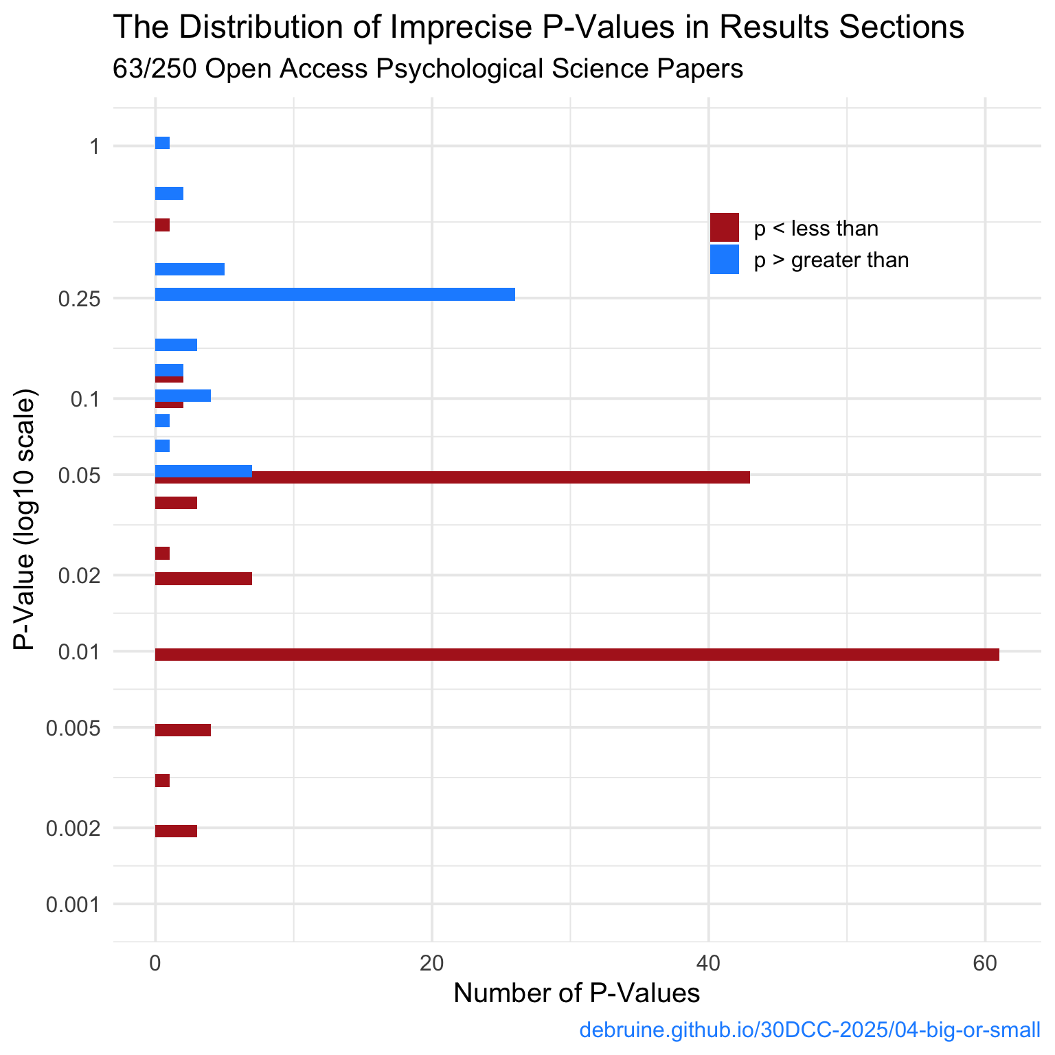 labs(title = "The Distribution of Imprecise P-Values in Results Sections",