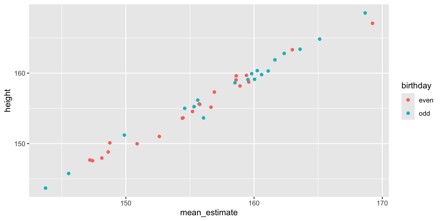 You get pretty much the same result when you compare these mean estimates between the groups of women with odd and even birthdays.