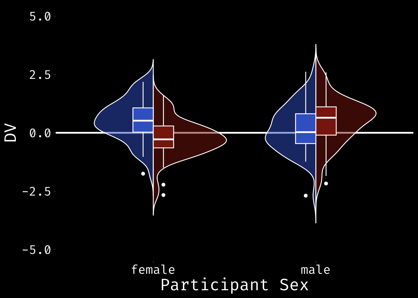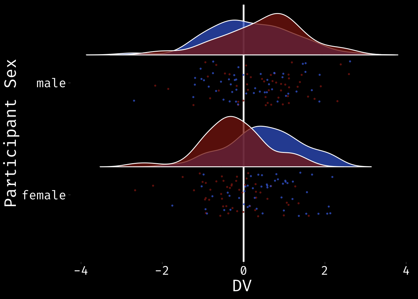 #ggsave("split_violin_pointrange.png", width=10, height = 6)Raincloud Plots