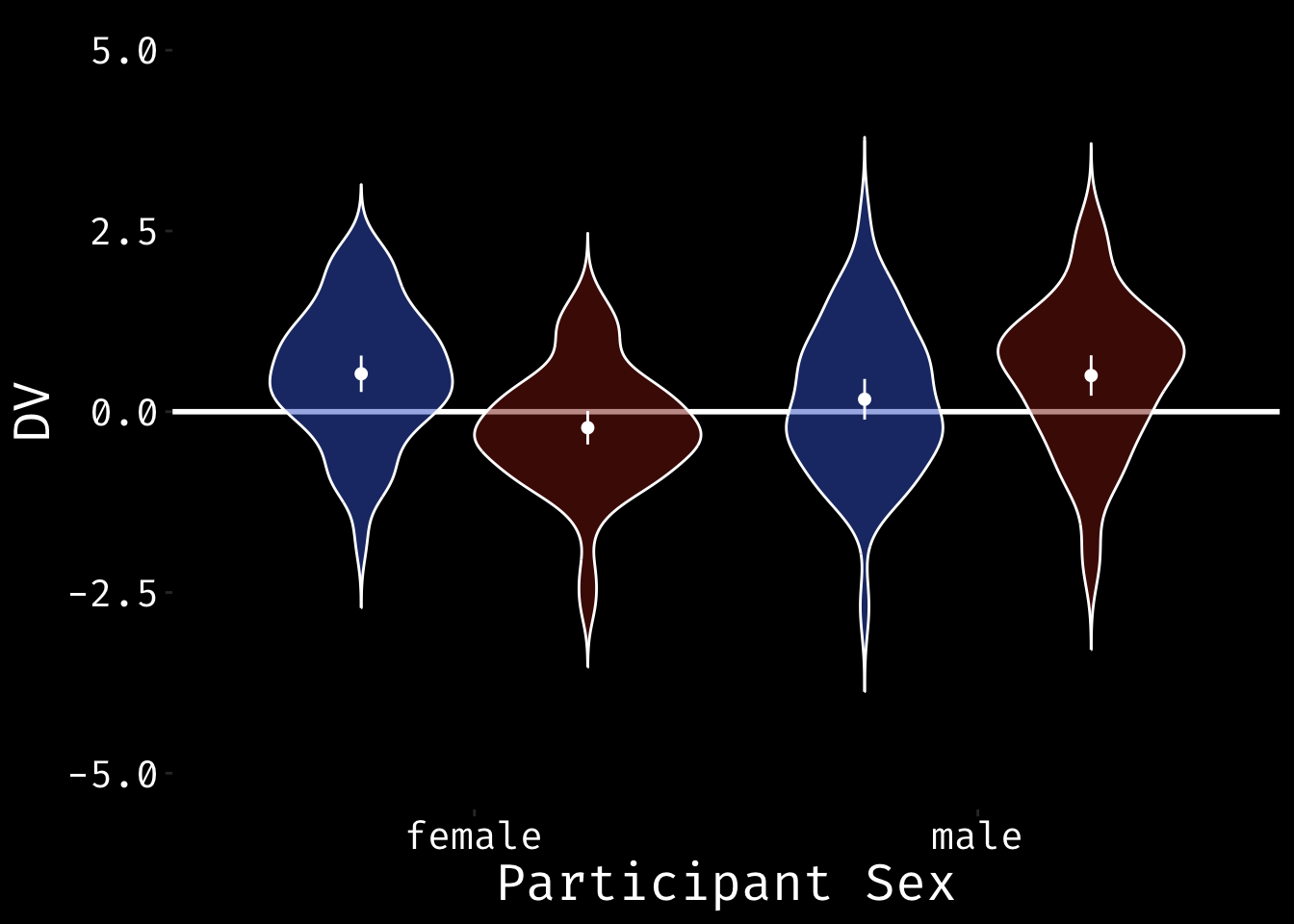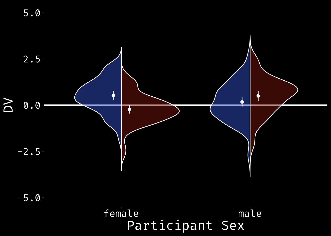 #ggsave("split_violin.png", width=10, height = 6)This is a split violin with means and 95% CIs defined.